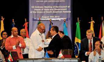 Al participar en la VII Cumbre de Jefas y Jefes de Estado y de Gobierno de la Unión de Naciones Suramericanas (UNASUR) que se realiza en la ciudad de Paramaribo (Surinam), el presidente Ollanta Humala Tasso presentó el informe de gestión del período comprendido desde el 29 de junio de 2012 hasta la fecha, en el que Perú ejerció la Presidencia Pro Tempore de este bloque de integración.