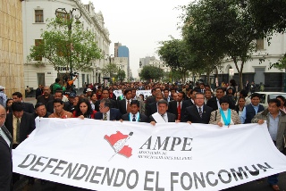 Cerca de mil alcaldes, procedentes de diversas localidades del interior del país, marcharon hoy por las calles de Lima, en la “Gran Jornada Municipalista del Perú” y dejaron en Palacio de Gobierno un petitorio en el que solicitan una mayor compensación económica y dialogo, pese a la negativa del presidente Alan García de recibir a los representantes de los gobiernos locales.