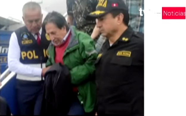 Desde su partida de San Francisco, Toledo fue custodiado por personal policial estadounidense y de la Interpol, quienes, al llegar al aeropuerto Jorge Chávez, lo entregaron a la Policía Nacional y al Ministerio Público peruanos.
