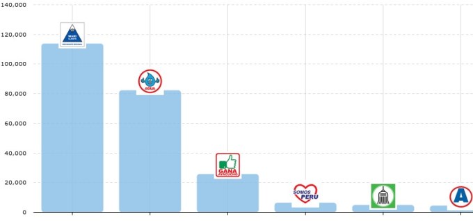 Su más cercano competidor, Pabel Nestor Bellido Miranda, del Movimiento Regional Agua, suma 34.677% de los votos.
