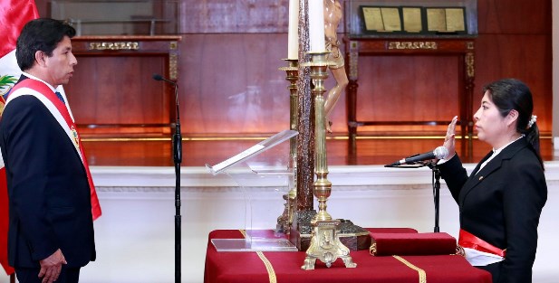 El presidente de la República, Pedro Castillo Terrones, tomó juramento esta tarde a la nueva presidenta del Consejo de Ministros, Betssy Chavez Chino, sucediendo en el cargo a Aníbal Torres Vásquez.