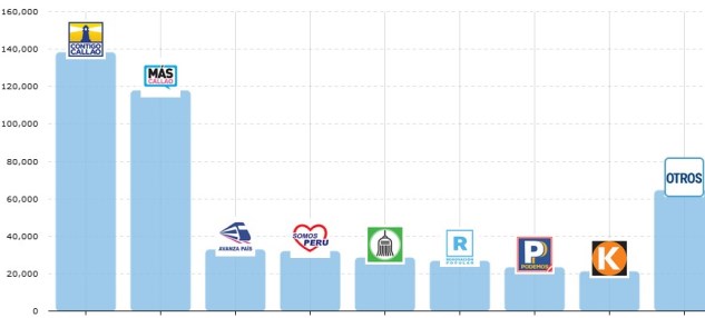 Su más cercano competidor, Ciro Ronald Castillo Rojo Salas, del Movimiento Regional Mas Callao, suma 24.263 % de los votos.