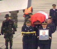 Después los féretros, que estaban cubiertos con la bandera peruana, fueron trasladados a la Base Las Palmas.