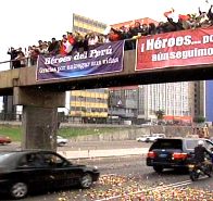 Al paso de los vehículos del cortejo fúnebre, familiares y público apostado en varias calles y puentes aplaudieron y lanzaron pétalos de flores con carteles de reconocimiento de héroes.