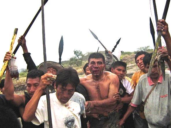 En la foto, la víctima aparece golpeada y ensangrentada tanto en la cara como en el cuerpo, al lado de siete indígenas armados con lanzas. (Con información de La República)