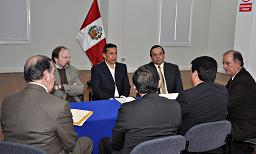 El presidente electo, señor Ollanta Humala, recibió esta tarde en su despacho al presidente de la Asociación de Bancos del Perú (ASBANC), Oscar Rivera Rivera y los directivos de la Asociación de Instituciones de Microfinanzas del Perú (ASOMIF) que reúne a las Cajas Municipales, Rurales y Mibanco.