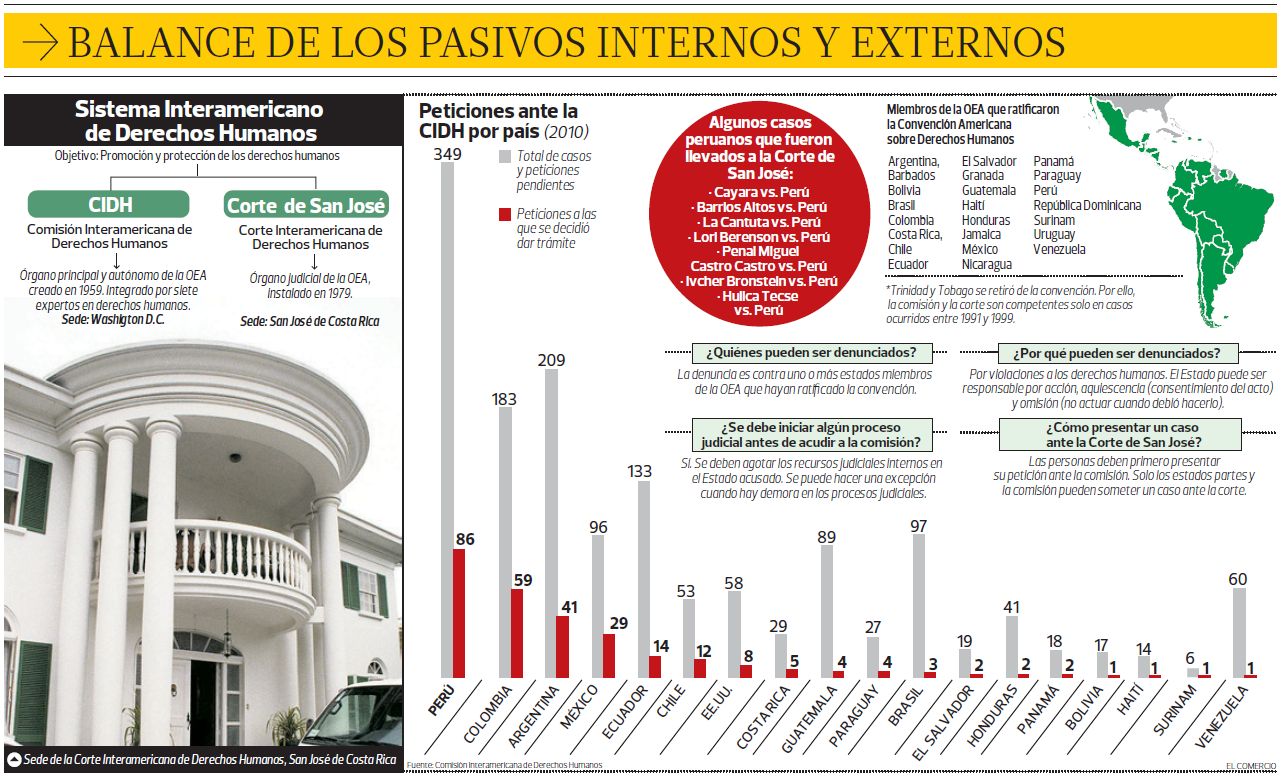 En el año 2010, la CIDH admitió 364 peticiones de denuncia contra nuestro país e inició trámite en 86 de estos casos. Estas cifras nos convierten en el país más denunciado del sistema interamericano.