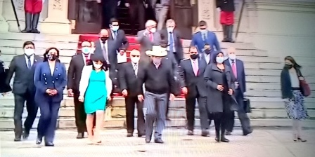 El presidente Pedro Castillo acompaño a sus ministros desde Palacio de Gobierno hasta una corta distancia, tras lo cual retornó a la sede del Ejecutivo.