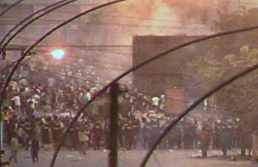De las imágenes transmitidas por RPP y otros canales se advierte un torpe accionar de la policía. Incluso se les ve en tropel corriendo a velocidad, como si estuviesen en carrera de hipódromo, tras lo cual se dan con una muchedumbre que los repele a palazos y se ven obligados a replegarse, acción que pudo haber causado lesiones serias a las personas.