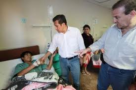 Luego el presidente Ollanta Humala llegó al Hospital Central de la Policía Nacional del Perú (PNP) donde, acompañado por el Director General de la Policía Nacional, general Raúl Salazar, visitó a efectivos policiales hospitalizados y garantizó el apoyo del Estado para mejorar sus tratamientos de salud.