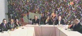 Humberto Lay, pastor evangélico anteriormente acusado de malos manejos financieros por sus seguidores y que ha convertido su religión en un comercio político.