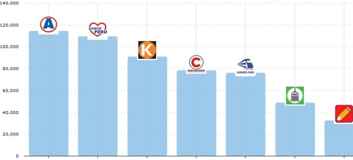 Su más cercano competidor, VJorge Luis Perez Flores, del Partido Democrático Somos Perú, suma 19.885% de los votos y disputará la segunda vuelta.