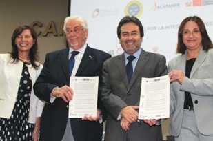 Firmaron también en calidad de instituciones vigilantes, el presidente del Consejo de Ministros, Juan Jiménez, en su condición de titular de la CAN; la presidenta ejecutiva del Organismo Supervisor de las Contrataciones del Estado (OSCE), Magali Rojas; el presidente de la Alafarpe, Carlos Cornejo, y el presidente de la Comisión de Ética de Comsalud, Julian Lockett.