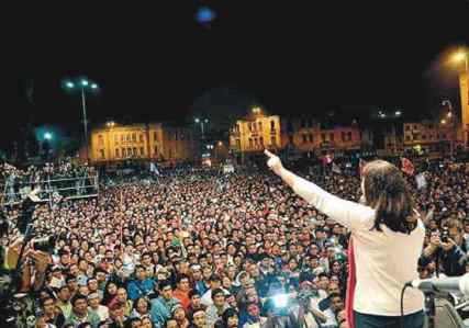 Después de las 9:00 p.m. la marcha se concentró en la Plaza Dos de Mayo, donde se levantó un estrado y la misma multitud empezó a llamar a quienes querían en el estrado.