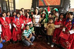 Vestidos con coloridos trajes típicos de la sierra, los cuarenta niños de 4to y 5to grado hicieron una visita guiada a la sede del Ejecutivo.