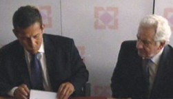 El candidato presidencial de Gana Perú, Ollanta Humala, firmó esta tarde el Acuerdo Nacional y aseguró que lo hacía como una muestra de su compromiso personal con el orden democrático.