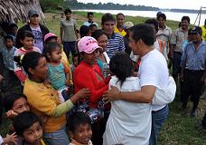 Al encuentro del presidente Ollanta Humala también salieron los miembros de las 12 familias que integran el pueblo de “La Esperanza”, instalado cerca del puesto “Algodón”. Dialogó también con ellos, saludó a los niños del lugar, les entregó útiles escolares y se comprometió a atender sus necesidades.