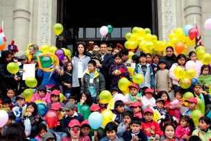 “Les damos la bienvenida al Palacio de Gobierno, abrimos las puertas a todos los niños. Y lo hacemos en el Gran Comedor, donde se celebran los banquetes con mandatarios, príncipes y princesas; porque ahora son ustedes nuestros príncipes y princesitas”, manifestó esta mañana la primera dama Nadine Heredia al inaugurar el programa “Palacio para Todos” junto a 250 niños de Manchay, El Agustino y comunidades nativas, con quienes compartió un desayuno y recorrió las instalaciones de la Casa de Gobierno.