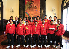 La cita se realizó en el Salón Túpac Amaru de Palacio de Gobierno, donde la esposa del jefe de Estado felicitó a los deportistas que lograron clasificar al Primer Mundial de Fútbol a realizarse en Río de Janeiro, Brasil, el 2013.