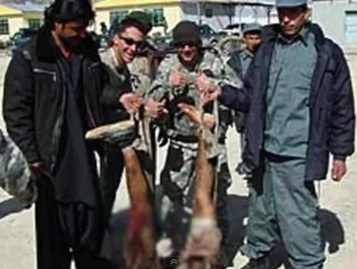 Fotos de soldados estadounidenses posando sonrientes en Afganistán con un par de piernas separadas del cuerpo de un presunto talibán por una expolsión fueron publicadas hoy por el diario Los Angeles Times.