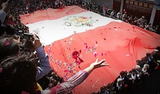 La Procesión de la Bandera se realiz´ó hoy en Tacna en conmemoeración del histórico regreso de Tacna al Perú tras soportar 50 años de crímenes de los cobardes militares chilenos contra la población civil indefensa después de la guerra de 1,879 emprendida por Inglaterra y Chile contra el Perú y Bolivia para apoderarse de los yacimientos salitreros.