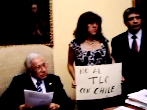 inconstitucionalidad contra el TLC con Chile, destacó la gentileza del presidente del TC Juan Vergara, a quien agradeció por haber acogido esta iniciativa legal y patriótica y solicitó se revise en el plazo de ley, por el interés nacional y en defensa del fuero del Congreso de la República, que se ve violentado por este TLC con Chile.