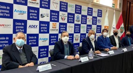 La ‘Unión de gremios del Perú’ conformada por sectores de la industria, comercio, exportaciones, transporte, turismo, tecnología, servicios, y la micro y pequeña empresa –representan más de 4 millones de empresarios– presentaron oficialmente la alianza en conferencia de prensa y exigieron al nuevo Presidente de la República, Pedro Castillo, garantizar la estabilidad del país con una propuesta en la que prevalezca la atención a los temas urgentes: la crisis sanitaria y la reactivación económica.