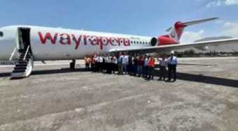 A las 10:15 horas aproximadamente un avión Focker 70, con velocidad de 750 km/h y capacidad para 77 pasajeros, ultramoderno, aterrizó en el terminal aéreo. En él llegaron el viceministro Estremadoryro, funcionarios del MTC, y representantes de Wayra Perú provenientes de la ciudad de Lima.