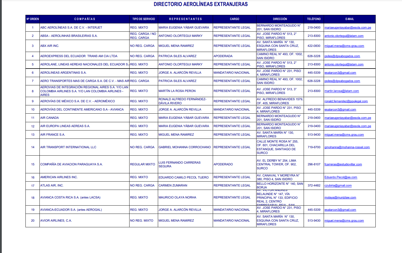 Representantes de algunas líneas aéreas extranjeras cuestionaron iniciativa legislativa del Perú a tener una Línea Aérea de Bandera