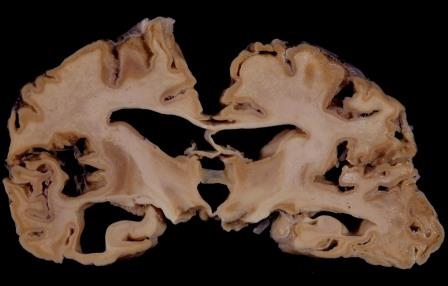 Cerebro dañado por los priones de la enfermedad de las vacas locas o síndrome de Creutzfeldt Jakob