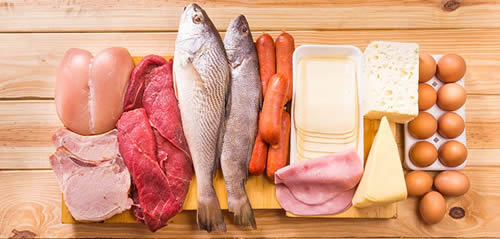 Las proteínas se encuentran tanto en alimentos de origen vegetal y animal, siendo estos últimos los de más fácil aprovechamiento y absorción. En este grupo se tienen carnes, pescados, aves, huevos, lácteos y otros productos elaborados a base de estos, como el jamón, hamburguesas, nuggets, entre otros.