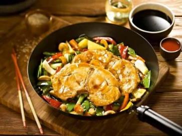 - Opción 2: Apanado de filete de pechuga de pavita con costra de ajonjolí. La carne se pasa por clara de huevo, se apana con harina de ajonjolí y se coloca en una sartén de teflón a fuego lento. Una ensalada de verduras de tres colores diferentes es el complemento ideal.