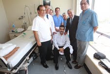 Antes de salir de alta en la tarde de hoy, el paciente recibió la visita del doctor Álvaro Vidal Rivadeneyra, presidente ejecutivo del Seguro Social de Salud – EsSalud, el doctor Jorge Rojas, gerente de la Red Asistencial Rebagliati y el cirujano Gilbert Román, quien dirigió al equipo médico que le hizo el trasplante del nuevo hígado. Este órgano estaba afectado por cirrosis y un trasplante era la única alternativa para que continúe viviendo.