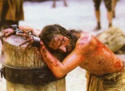 La espina dorsal quedaba expuesta, ya que la espalda terminaba desgarrada debido a cortes profundos Los hombros recibían los latigazos, que pasaban por el nivel de la espalda, las nalgas, y las piernas. Durante el lapso que duraba la flagelación, las laceraciones alcanzaban hasta los músculos y generaban temblores de carne sangrante. En esta condición, las partes internas quedaban al aire, conjuntamente con los músculos, tendones y las entrañas.