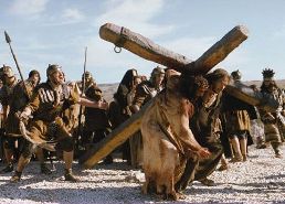 El Instante de la Crucifixión: El final de Jesús fue todavía peor que la crucifixión común. En aquella época, no a todos los criminales condenados se los clavaba en la cruz. Muchos más bien eran amarrados. Jesús fue acostado y clavaron sus manos en posición abierta en el madero horizontal, que era conocida con el nombre de patibulum. El madero vertical estaba clavado al suelo de forma permanente.