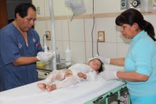 Ministerio de salud traslada a bebé con graves quemaduras desde Huancayo a Lima