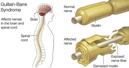 Suele empezar con un hormigueo y debilidad que comienza en los pies y las piernas y luego se difunde a la parte superior del cuerpo y los brazos. A medida que este síndrome avanza, la debilidad muscular puede evolucionar a una parálisis.