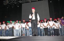 El segundo gran momento de la puesta en escena se vivió con la presentación de los “Rafas”; quienes bailaron una motivadora y alegre coreografía. Este grupo de jóvenes conformado por 300 alumnos de colegios estatales y universidades, será el encargado de llevar regalos y alegría a los enfermos de diversos hospitales de Lima, informó Tejada Noriega.
