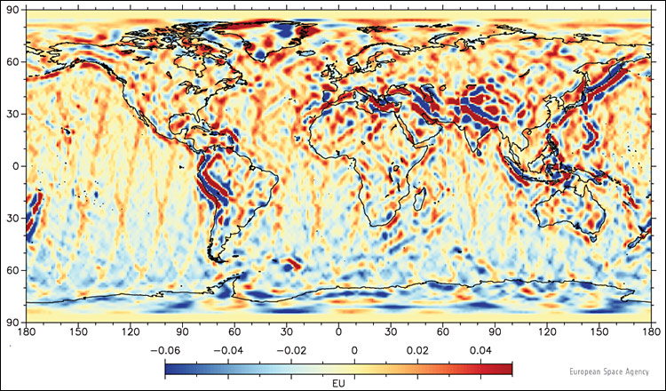 Un completo mapa del comportamiento de la gravedad en nuestro planeta, el cual no existía antes a partir de mediciones terrestres ni satelitales, pudo ser completado gracias al trabajo del equipo al comando del satélite europeo Goce.