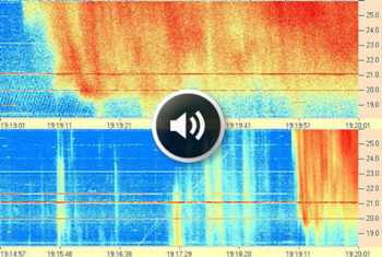 Wes Greeman graficó el espectro dinámico de estas emisiones, según indica Space Weather, como se observa en la ilustración, donde el eje horizontal es el tiempo (h:m:s) y el eje vertical la frecuencia (MHz).