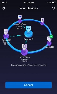 Una vez instalada ‘DriveSpan’ en el sistema iOS o Android de tu teléfono móvil, ésta se convertirá en la unidad de control central para conectar fuentes. Para añadir una fuente, presiona el botón de suma. La siguiente página mostrará todos los dispositivos y fuentes disponibles en tu red WiFi que puedes usar para realizar la consolidación. En general, se pueden seleccionar las siguientes fuentes: PC o Mac (y dispositivos externos conectados, como memorias USB), servicios de almacenamiento en la nube, además de otros dispositivos móviles.