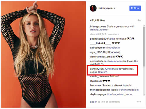 Uno de los máximos intereses de los operadores de Turla es infectar sitios web de embajadas. Teniendo esto en cuenta, desde ESET se monitorea de cerca la evolución de estas campañas y hace poco desde su Laboratorio de Investigación se identificó el uso de redes sociales para ocultar información de conexión a sus centros de comando y control. De hecho, los investigadores observaron algo relacionado en los comentarios que aparecen en esa publicación específica de Instagram. El comentario utilizado en la muestra analizada era sobre una fotografía publicada en la cuenta oficial de Instagram de Britney Spears.