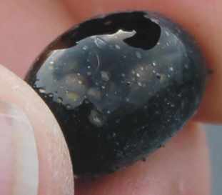 Las rocas son negras cristalinas, y fueron halladas al borde del cráter Halemaumau, a unos 110 metros de altura por encima del lago.