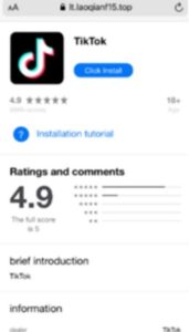 Páginas falsas que imitaban la App Store para instalar una supuesta app de TikTok mediante herramientas de desarrollador, y que también incluían una tienda integrada en la app modificada, la cual solo aceptaba pagos en criptomonedas.