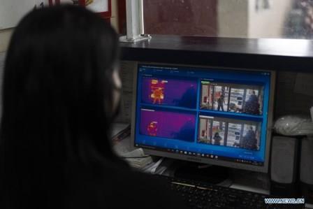 Buenos Aires, 13 de diciembre de 2021, una trabajadora monitoriza mediante un sistema de inteligencia artificial con cámaras térmicas desarrollado por Huawei, la temperatura corporal de un hombre que ingresa a la Casa Garrahan, del Hospital de Niños Juan P. Garrahan que brinda alojamiento a niños, adolescentes y sus madres en tratamientos ambulatorios. La tecnología e insumos de avanzada de Huawei han sido vitales para que Argentina pueda potenciar su respuesta a la pandemia del COVID-19 durante los últimos dos años. (Xinhua/Martín Zabala)