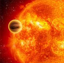 El planeta HD 189733b es un gigante gaseoso similar a Júpiter, pero se encuentra extremadamente cerca de su estrella, tan sólo a un treintavo de la distancia que separa al Sol de la Tierra.