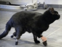 Un gato que perdió sus patas traseras en un accidente con una cosechadora fue operado con éxito por un cirujano que le implantó dos prótesis de titanio, con lo cual ahora consiguió volver a andar.