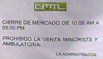 Tras esperar inútilmente, un empleado salió a colocar un cartel que indica cierre desde las 10 de la mañana hasta las 17:00 h, siendo esto una muestra de la gran improvisación, pues el público esperaba mejor atención que en La Parada, donde había actividad las 24 horas del día, pues siendo un mercado mayorista, los camiones de carga de costa, sierra y selva se desplazan a toda hora.