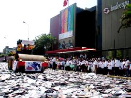 | Destrucción de CD piratas frente al edificio del Indecopi |