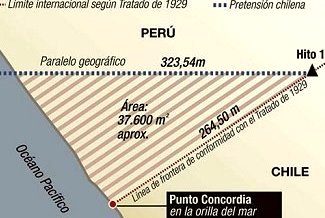 No ,en la legislación peruana y en el tratado dice claramente que la frontera terrestre inicia en el punto de la concordia y el hito número se coloca para señalizar la dirección por si el mar borraba el límite ,en ningún momento dice que se trazará una línea en dirección noroeste y el área resultante será para Chile ,rotín lee bien el texto .La corte del Haya le dió la razón a Chile en el Hito uno porque ambos fijaron la frontera marítima a esa altura ,pero la corte afirma que la frontera terrestre puede no coincidir con la marítima.En ningún momento afirma que la frontera terrestre inicia en el Hito 1 ,Piñera ya les metió el dedo una vez más a los chilenos.
